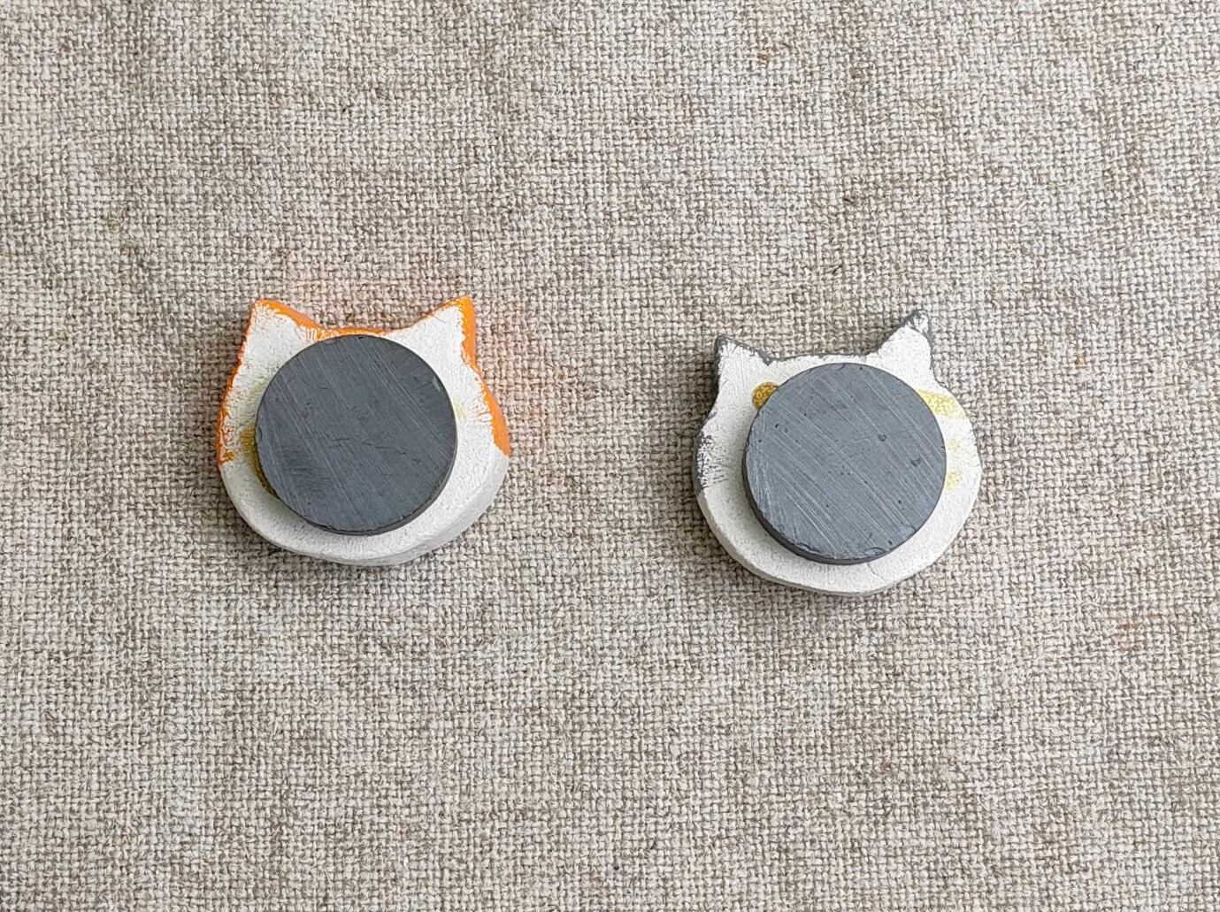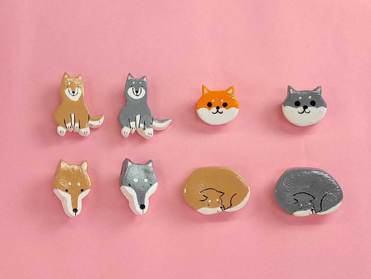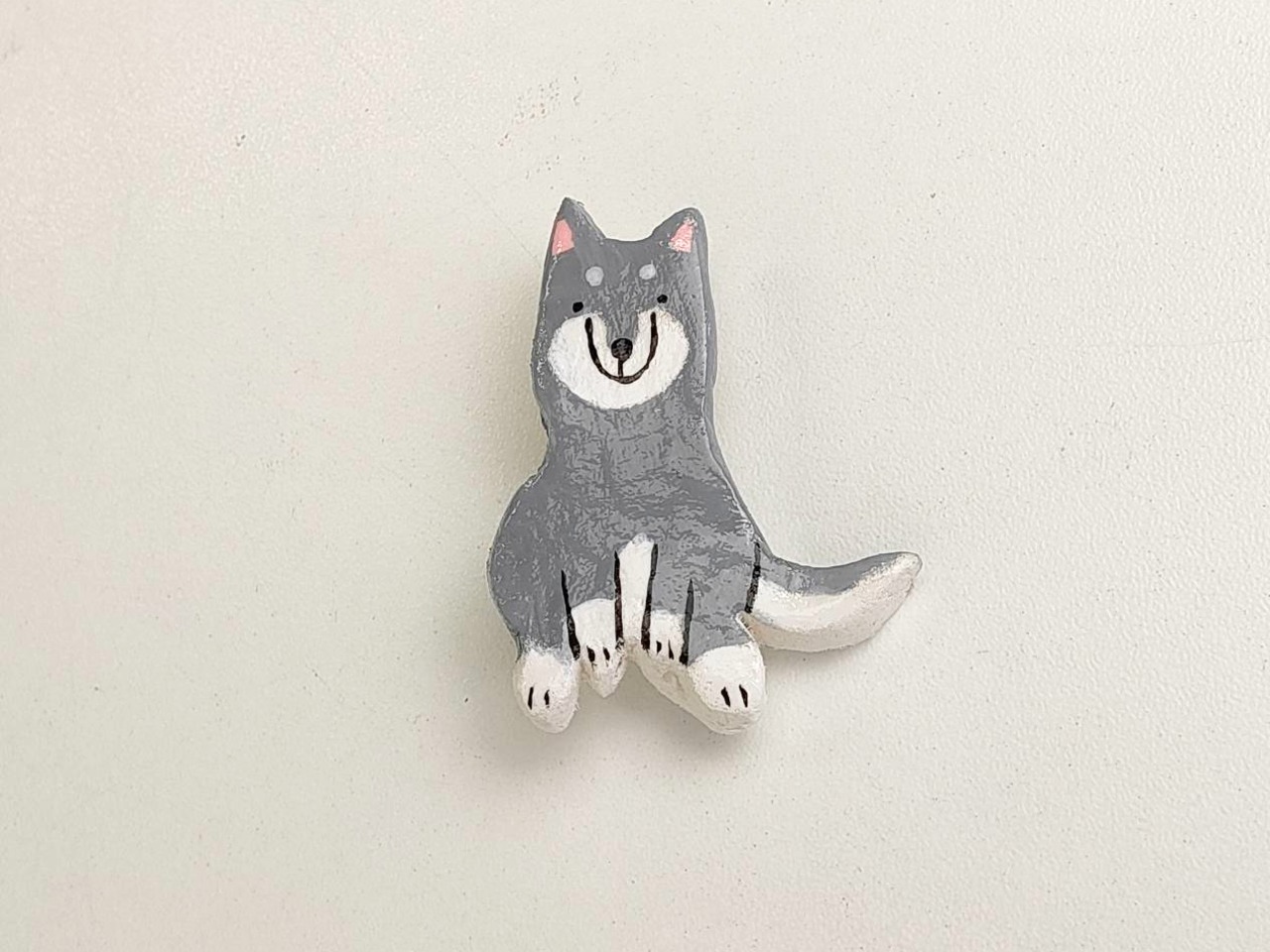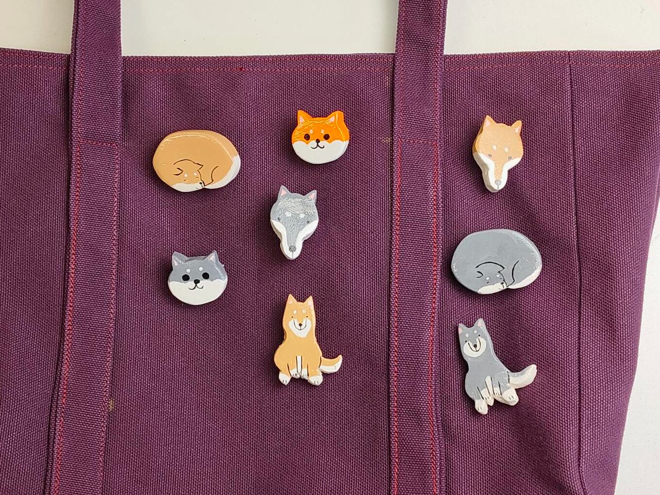 てのひらに収まるくらいのサイズ感がかわいいクレイバッジです。かわいらしいネコと犬のデザインとなっております。手作りのため、ひとつづつ表情がちょっと違うのも面白いですね。